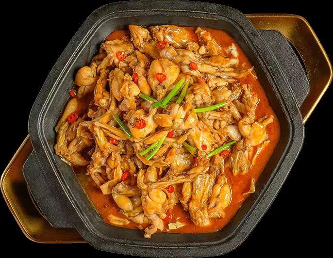 蛙来哒不仅有特色的牛蛙,还有各种特色菜品和小吃,比如有重庆凉面,炭烤排骨,烈焰花甲,香辣大盘鸡,香辣鱿鱼,小缸串串,老卤牛乳,香辣蹦蹦虾,还有餐前的开胃菜无骨鸡爪.......每一款都不会踩雷。
