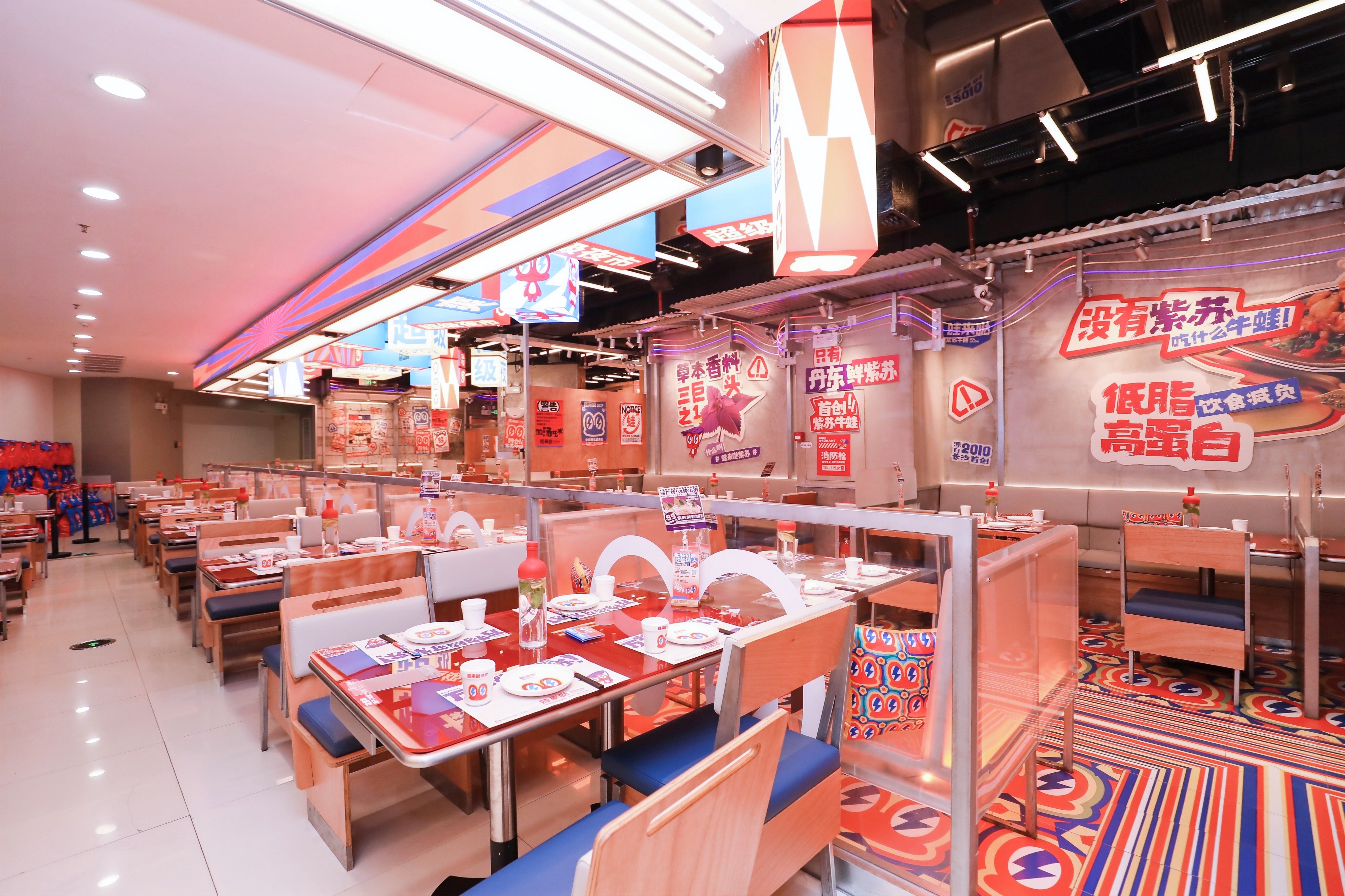 为了持续发挥年轻品牌活力,在门店装修风格方面,牛蛙品牌蛙来哒门店风格不断的更新迭代,从5.0星球科技风到6.0超级夜市风,风格也愈加年轻化。不同的视觉呈现,始终保持品牌形象年轻化,给予食客不同的消费体验。