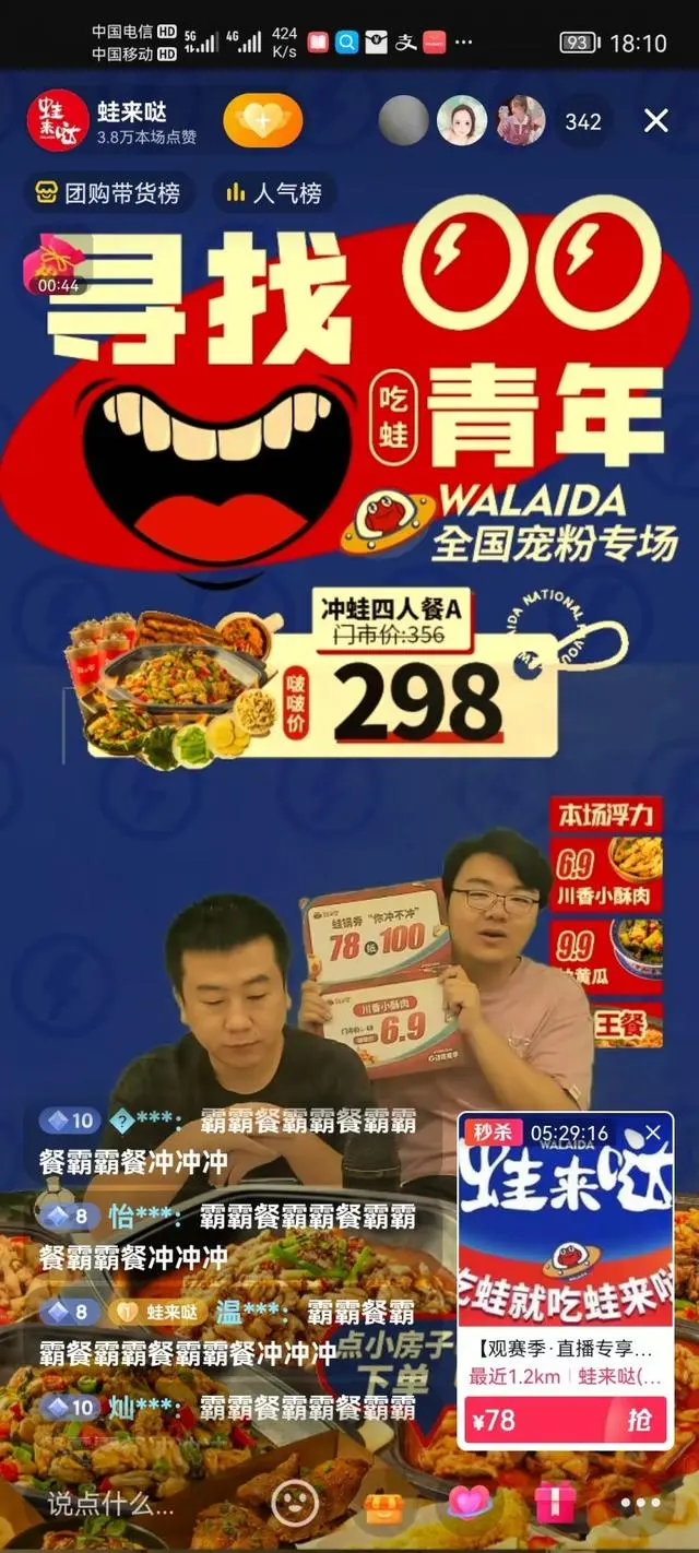 2022年,蛙来哒在长沙率先尝试抖音直播,通过直播形式传播牛蛙美食文化,成功吸引了大批粉丝。到了2023年,蛙来哒通过直播间售出的蛙锅数量高达20万份,直播销售额突破2,000万元,新增粉丝4.6万人,其中新客下单占比高达86%。