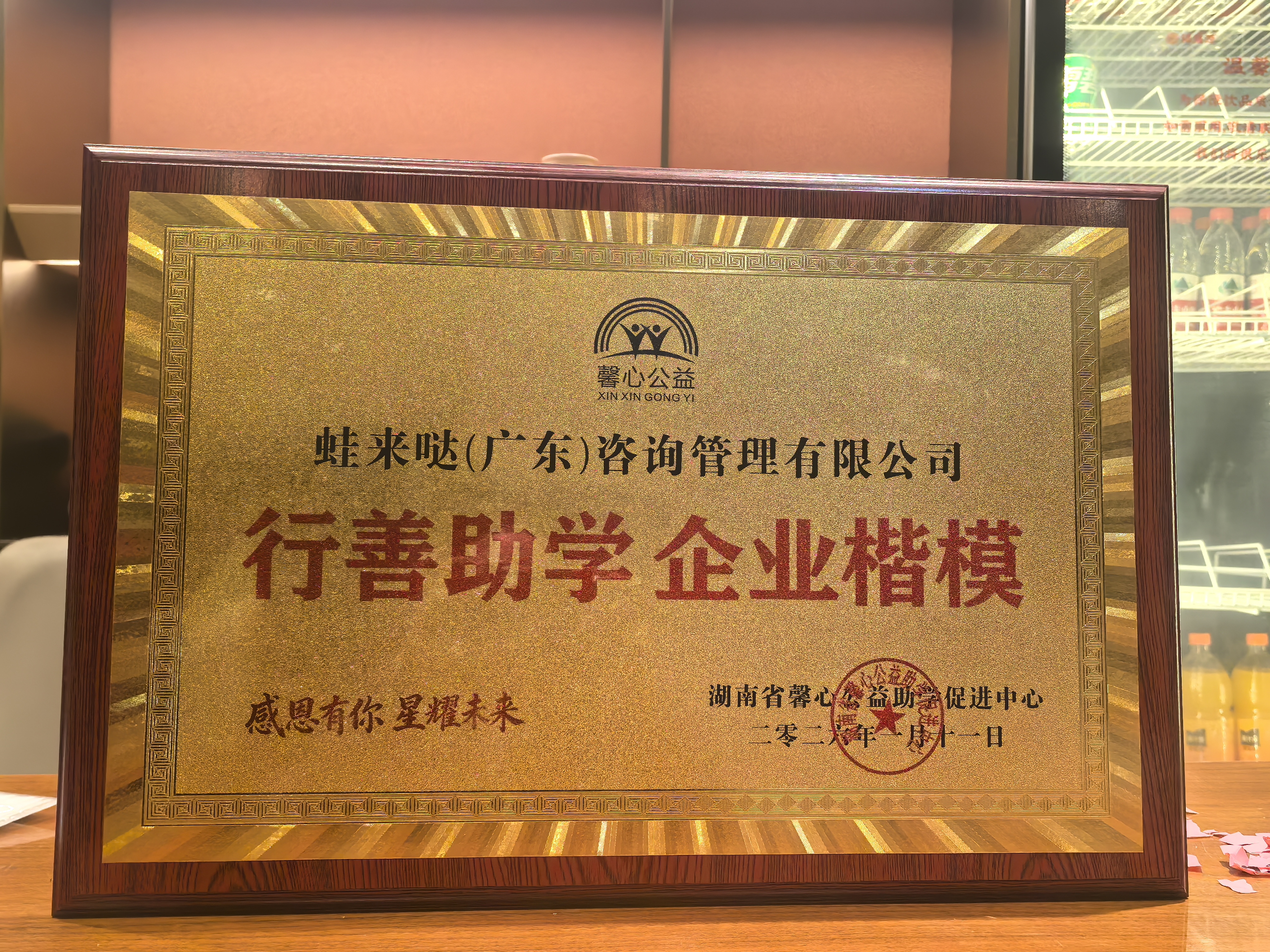 2026年伊始,蛙来哒收到了一份特别的“新年礼物”——由湖南省馨心公益助学促进中心颁发的“行善助学,企业楷模”荣誉称号。这份沉甸甸的荣誉,将一家餐饮连锁品牌的叙事,从滋滋作响的餐桌,引向了朗朗书声的课桌。