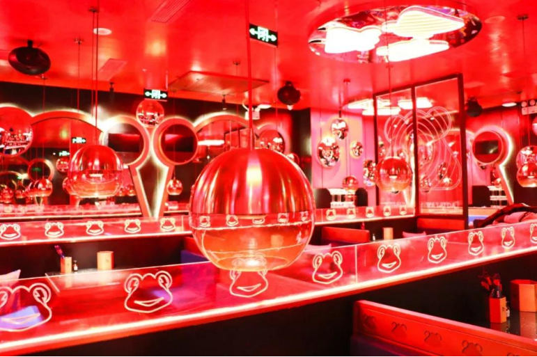 蛙来哒装修太独特,红蓝色调做主打色调,营造情绪释放空间